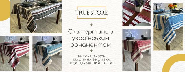 Магазин "True Store" є провідним інтернет-магазином, який спеціалізується на продажі скатертин з українським орнаментом. Наша компанія пропонує широкий вибір унікальних скатертин, які прекрасно впишуться в український стиль вашого інтер'єру.