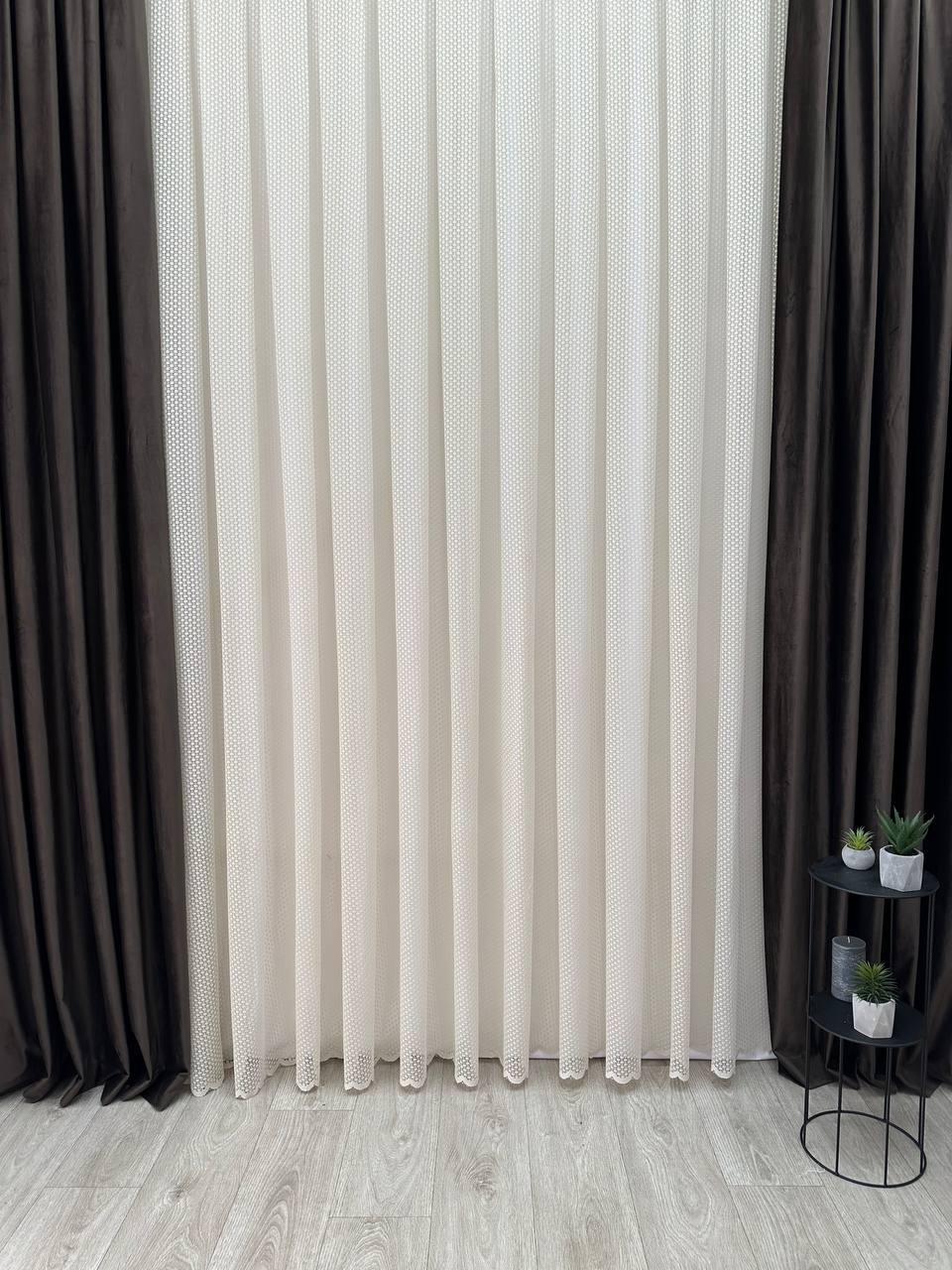 Однотонна тюль "Гіпюр". Колір: капучіно